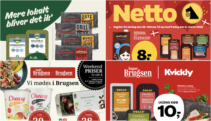 SuperBrugsen og Kvickly tilbyder Tulip pålæg i flere varianter, herunder kylling klassisk og sønderjysk spegepølse, til kun 10 kr. pr. pakke. Tilbuddet gælder fra fredag 27. februar til torsdag 5. marts.
